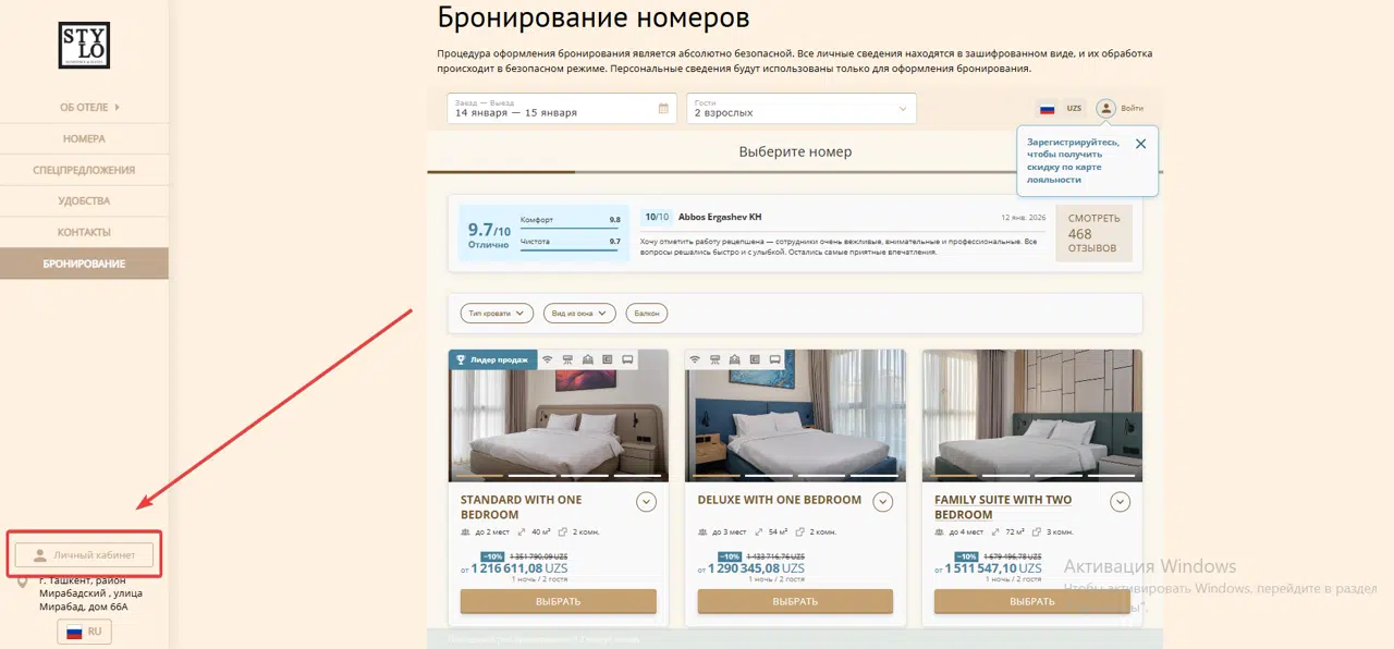 - ال قاعدة يتم تعيين الحالة بعد التسجيل في البرنامج أثناء اختيار الغرف في نموذج الحجز. تحصل على 10% خصم على جميع التعريفات المتاحة على الموقع الرسمي.